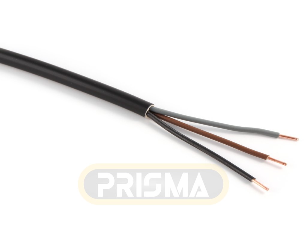 Kábel CYKY-O 3x1,5 pvc čierny, pevný – medené jadro, PVC izolácia, výplňový obal, PVC plásť. Používa sa pri inštaláciách na vzduchu aj v zemi - pri pevnom uložení do zeme, betónu alebo ochranných rúr.