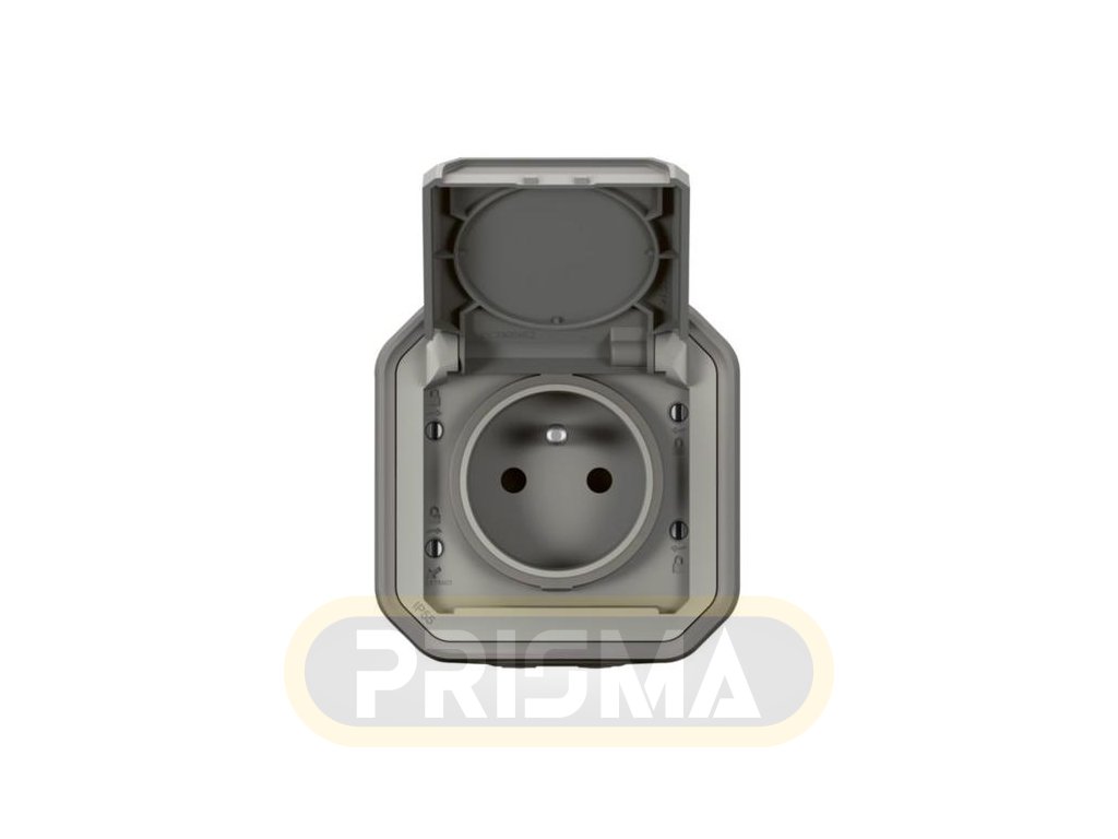 Zásuvka vodovzdorná jednoitá IP55 PLEXO sivá